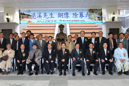 29일 기업은행에 따르면 27일 오후 경북 안동에 위치한 도산서원 선비문화수련원에서 조준희 은행장과 김병일 이사장 등 200여명이 참석한 가운데 퇴계 이황 선생 동상제막식을 가졌다.