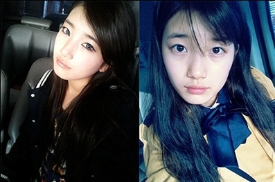 걸그룹 미쓰에이 맴버 수지가 파란 눈 셀카 사진을 공개했다.