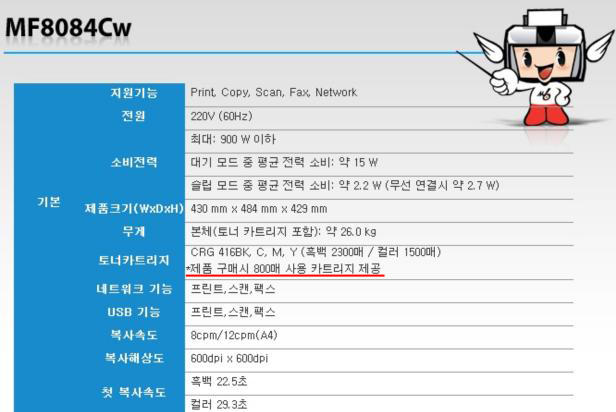 구입 당시 제품 사양 중 토너카트리지 부분에 ‘제품 구매시 800매 사용 카트리지 제공’이라는 문구를 확인, 대략적인 기대치를 갖고 구입했다는 것이 이 씨의 설명.