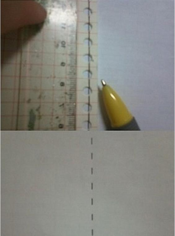 사진을 보면 이 구멍에 자를 대고 그으면 깨끗하게 점선이 그려진 것을 볼 수 있다.