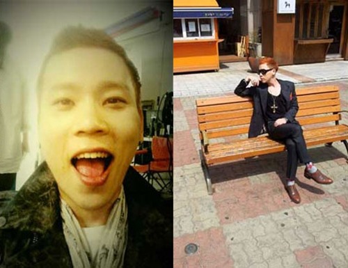 사진 속 임윤택은 밝은 갈색 머리를 한채 환한 웃음을 짓거나 블랙 수트 차림으로 벤치에 앉아 모델같은 자태를 뽐내고 있다.