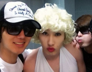 공개된 사진 속에는 평상시와 다름없는 슈퍼주니어 맴버들 사이에서 은혁이 마릴린먼로의 가발과 새하얀 윈피스를 입고 빨간입술을 내밀고 있어 보는이로 하여금 웃음을 자아낸다.