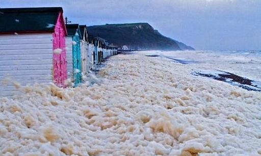 시튼 베이 해변의 이 거품은 남성의 허리까지 올 정도로 높다고 한다.