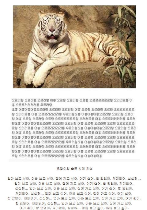 ‘호랑이 슬픈 사연’ 게시물의 내용은 호랑이의 울음소리인 '으르렁 으르렁 어흥'을 해석해 놓았다.