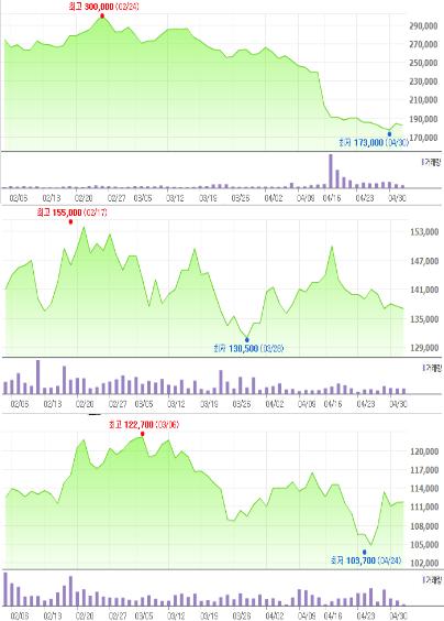 1분기 기대이하의 실적을 기록한 홈쇼핑 빅3는 최근 주가도 부진하다.