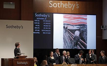 3일(현지시간) 미국 소더비 경매장에서 진행된 ‘절규’는 역대 사상 최고가인 1억1천992만2천500달러(약 1천355억원)에 낙찰됐다.