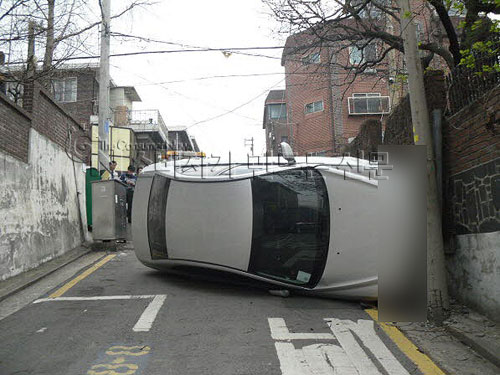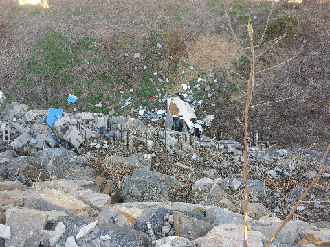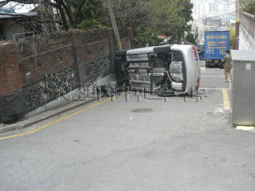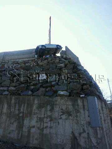 결국 차는 50m를 돌진해 벽에 충돌한 뒤 2번을 뒤로 왔다 갔다 하더니 순식간에 담장을 부수고 약 20m 낭떠러지로 추락하고 말았다.