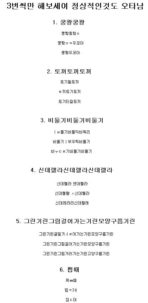 게시물을 보면 반드시 오타나는 단어는 쿵쾅쿵쾅, 토끼토끼토끼, 비둘기비둘기비둘기 등이다.