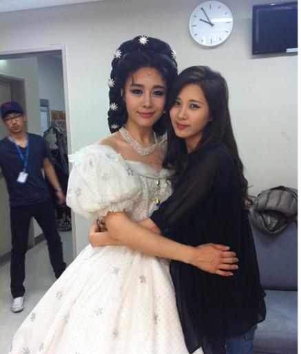공개된 사진에는 옥주현은 소녀시대 서현과 함께 무대의상을 입은 채 다정하게 사진을 찍고 있다.