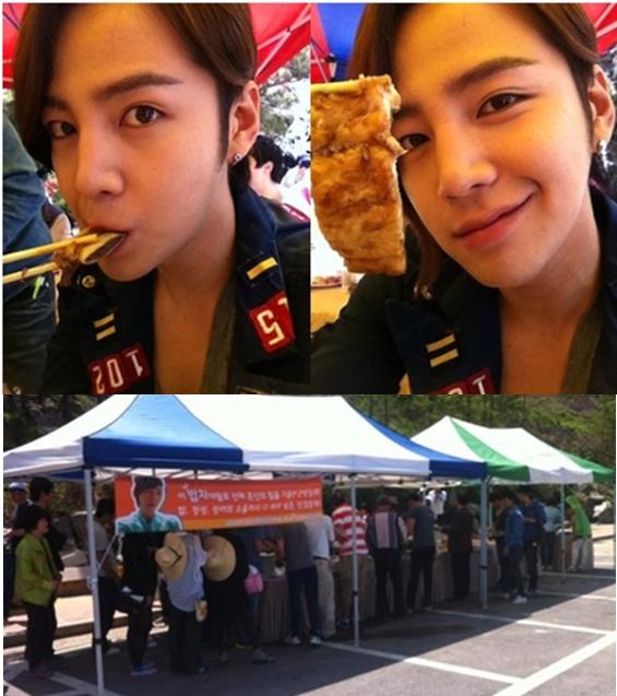 또 다른 사진에서 장근석은 밥차 음식을 먹으며 즐거운 표정을 짓고 있다.