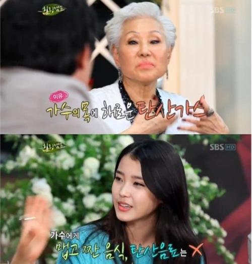 이날 패티김을 위해 깜짝 출연한 아이유는 "콜라를 많이 마시면 다음 날 목이 많이 쉰다"고 고민을 털어놨다.