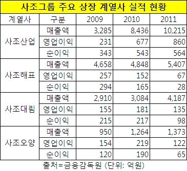 큰형님 사조산업과 막내 동생 사조씨푸드가 외실과 내실을 착실히 다지고 있는 반면 사조해표, 사조대림, 사조오양 등 주요 상장 계열사들은 고전을 면치 못하고 있다.