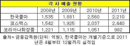 현재 사업규모는 한국콜마가 가장 크다. 한국콜마는 2011년 사업연도 3분기 누적 매출액(2011년 4~12월)이 2천210억원으로 전년 동기대비 16.7% 증가했다. 이로써 작년 매출액은 3천억원에 달할 것으로추정된다.
