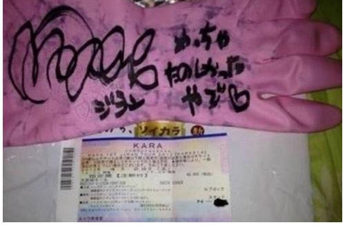 특히 고무장갑에는 강지영의 친필 사인이 담겨져 시선을 끌었다.