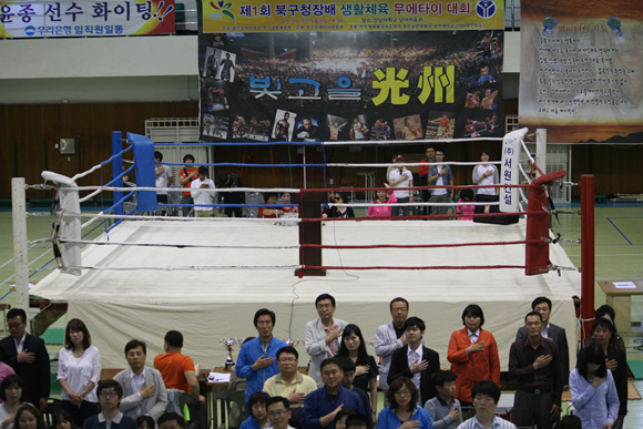 광주 북구 무에타이연합회가 주관하고 광주광역시 북구와 북구생활체육회가 주최하는 제1회 북구청장배 생활체육 무에타이 대회가 6일 오후 전남대학교 실내체육관에서 성대하게 열렸다.