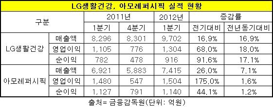반면 아모레퍼시픽은 매출과 영업익이 늘었지만 신장률이 둔화됐다. 아모레퍼시픽 1분기 매출액은 7천415억원으로 전년동기 대비 7.1% 증가했다. 그러나 영업익과 순익은 각각 1천504억원, 1천140억원으로 제자리 걸음에 그쳤다.