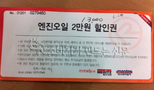그는 지난해 5월 보험 계약 당시 엔진오일 할인권, 워셔액 보충 무료서비스 이용권 등이 담긴 쿠폰북을 사은품으로 받았다.