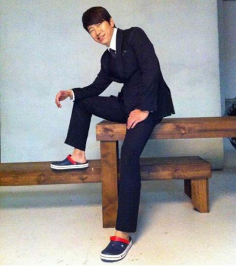 김수로는 10일 오후 자신의 트위터에 "정장에 이런 슬리퍼는 안된다는 것을 보여주려 했는데 의외로 잘 어울린다!"는 글과 함께 사진을 게재했다.