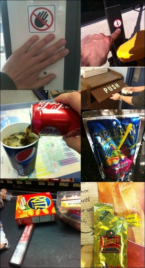 공개된 사진을 보면 최악의 반항아들은 손을 대지 말라는 곳에 꼭 손을 대고 있고, 'PUSH'(밀다)라고 적어놓은 휴지통은 당겨서 넣는다.