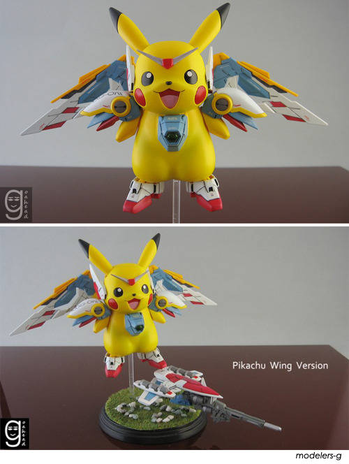 건담+피카추는 일본의 한 아마추어 모델러가 피카추와 건담을 합쳐 제작한 것이다.