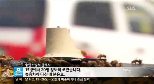 이 사고로 화물차 조수석에 타고 있던 강모 씨와 승용차 운전자 등 5명이 벌에 쏘여 인근 병원 후송돼 치료를 받고 있다.