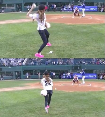 이날 제시카는 LG 트윈스의 유니폼에 스키니팬츠, 핑크 운동화를 착용하고 멋진 와인드업 자세까지 선보이며 개념 시구를 선보였으나 그녀의 손을 떠난 공이 바로 맨땅에 꽂혀 야구팬들에게 웃음을 선사했다.