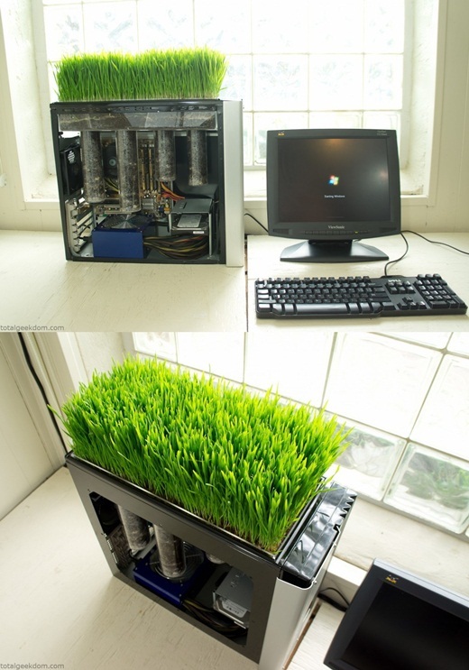 그는 흙을 따뜻하게 유지하면 식물이 빨리 자란다는 사실을 알고 컴퓨터 본체의 열을 이용해 풀을 자라게 했다.