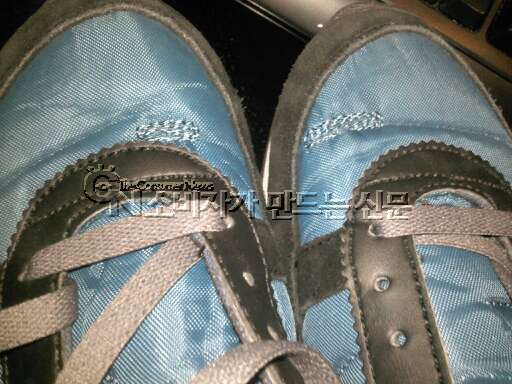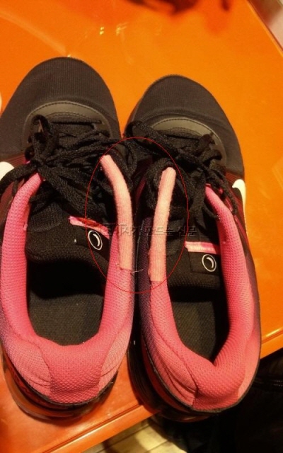 ◆ 엉뚱한 색상으로 덧댄 운동화 폐기해야 할 판
