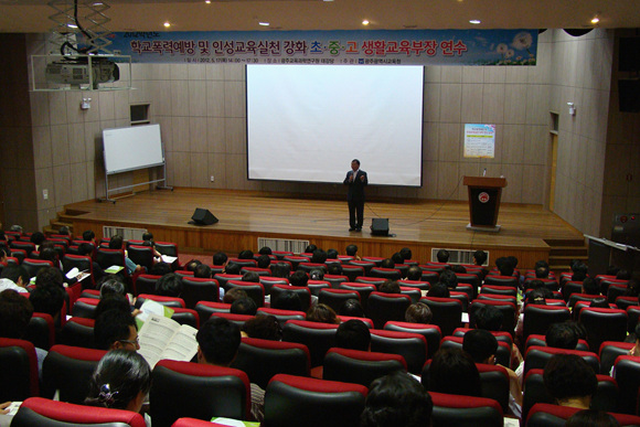 광주광역시교육청(교육감 장휘국)은 17일 오후 2시 광주광역시교육과학연구원 대강당에서 ‘학교폭력예방 및 인성교육실천 강화를 위한 연수’를 실시했다.
