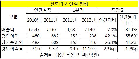 18일 금융감독원 공시자료에 따르면 신도리코의 올 1분기 매출은 2천140억 원으로 전년 동기(1천632억 원) 대비 31.1% 늘어났다. 영업이익도 238억 원으로 55.6%,당기순이익 역시 216억 원으로 41.2% 증가했다. 2분기 실적 전망도 계속 '맑음'이다.
