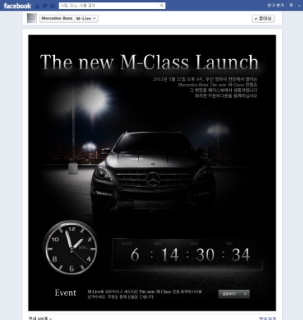 메르세데스 벤츠코리아가 프리미엄 SUV 모델 뉴 M 클래스의 국내 출시와 함께 공식 페이스북 팬 페이지를 오픈한다.