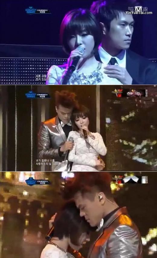 가수 박진영과 가인이 '엠카운트다운'에서 환상적인 호흡을 선보여 화제다.