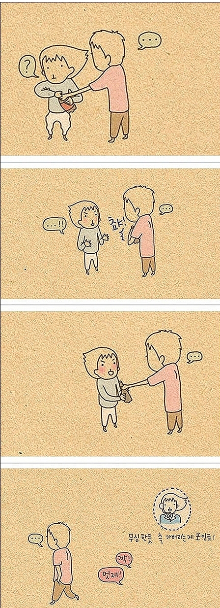 그림 아래에는 '무심한 듯 슥 가버리는게 포인트'라는 글이 덧붙여져 있어 웃음을 자아낸다.
