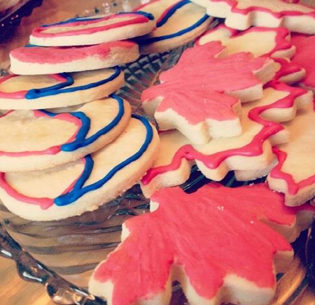 공개된 사진에는 태극기 무늬가 새겨진 쿠키와 캐나다를 상징하는 모양의 단풍잎 쿠키가 접시에 담겨있다.