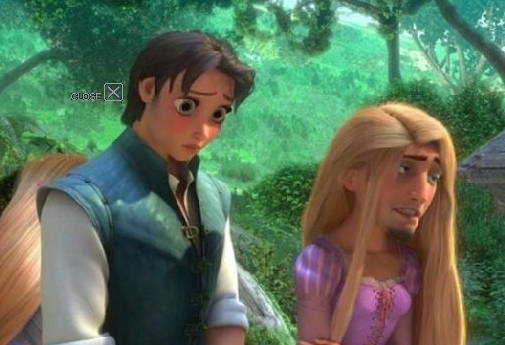 만화영화 '라푼젤'에서 라푼젤의 얼굴은 남자주인공의 얼굴로, 라푼젤의 얼굴은 남자주인공의 얼굴로 바뀌어있다.