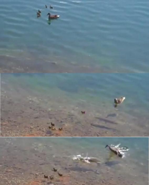 ‘오리 잡아먹는 물고기’영상에 네티즌들은 "새끼오리 먹힐 뻔 했네", "물고기 무섭네", "새끼오리가 작아서 먹을려고 했나봐"등의 반응을 보였다. (사진-온라인 커뮤니티)