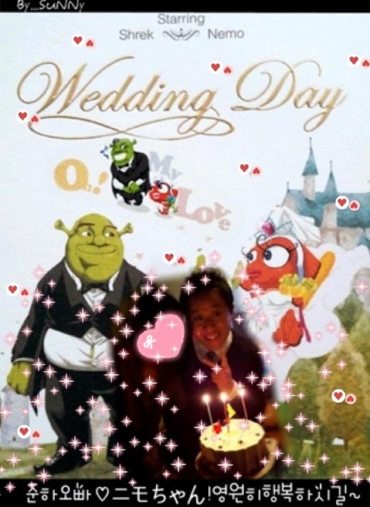 김선아가 공개한 사진은 정준하의 청첩장과 정준하와 신부 니모의 3주년 파티 사진이 합성된 모습이다.