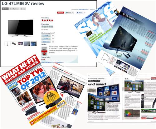 영국의 또 다른 유명 잡지인 '왓 하이파이(What Hi-Fi)'도 6월호에서 55인치 제품(55LM960V)에 대해 "시네마 3D TV를 통해 상영되는 블루레이 영상은 실물에 가깝고 자연스럽다"며 평가했다.