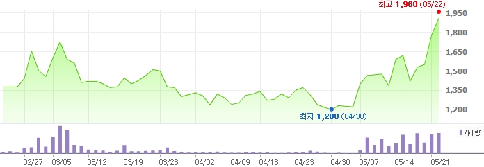 23일 증권업계에 따르면 코리아나화장품의 22일 주가는 전일 대비 7.30%(130원) 오른 1천910원에 거래를 마쳤다. 특히 주가가 장중 1천960원까지 치솟아 최근 5년간 최고가를 기록했다.