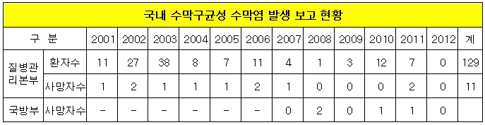 실제로 국방부가 집계한 자료에 따르면 군내 수막구균성 수막염으로 인한 사망자수는 최근 5년간 4명에 그쳤다. 질병관리본부가 같은 기간 동안 3명이 사망한 수치와 상이하다. 뿐만 아니라 발병 환자수도 2000년대 후반에 들어 10명 안팎으로 적은데다 사망자수는 1~2명에 그치는 것으로 확인됐다.
