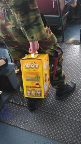공개된 사진 속 한 군인은 '맥심' 커피믹스를 들고 서 있다.
