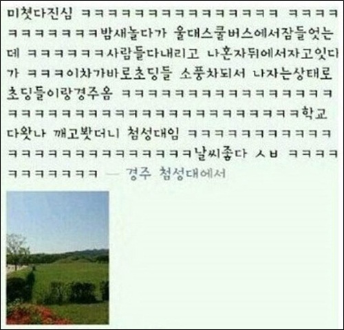'스쿨버스 자면 안 되는 이유' 게시물에 누리꾼들은 "나도 비슷한 경험 있는데", "더 멀리 갔으면 어쩔뻔", "자고 일어나니 경주", "어떻게 모르고 갔을까" 등 다양한 반응을 보였다.