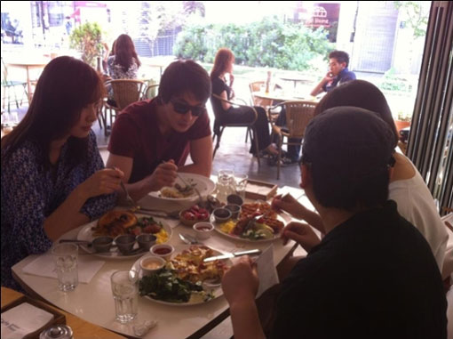 사진에는 권상우와 손태영이 지인들과 브런치를 즐기는 모습이다.