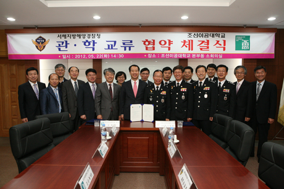 서해지방해양경찰청(청장 김용환)은 인적ㆍ물적 교류를 통한 우수인력 양성과 학문적, 실천적 공동 협력체계 구축을 위해 조선이공대학교(총장 김왕복)와 MOU을 체결하였다고 23일 밝혔다.
