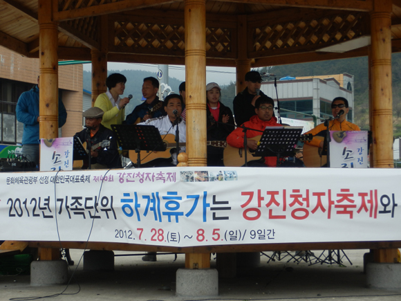 지난 6일 소리조아 회원들이 사계절 관광객이 넘치는 완도 청산 도에서 제40회 강진청자축제를 홍보하고, 길거리콘서트를 개최해 관광객들로부터 큰 호응을 얻었다.