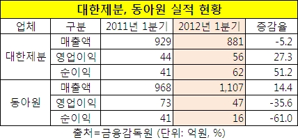 제분·사료사업을 함께 하는 동아원은 올 1분기 매출액은 14.4% 증가한 1천107억원을 기록했다. 반면 영업이익과 순이익은 각각 47억원, 16억원으로 35.6%, 61% 감소했다.
