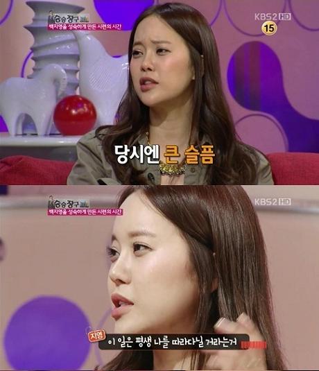 지난 22일 방송된 KBS 2TV '승승장구'에 출연한 백지영은 "과거 스캔들 파문때 사실 가족들 때문에 더욱 고통스러웠다"고 밝혔다.