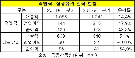 락앤락은 중국 등 해외시장 공략이 더욱 탄력을 받으면서 매출과 수익이 고르게 훌쩍 뛴 반면 삼광유리는 주력제품인 캔과 유리병이 비수기를 뚫지 못하고 실적이 가라앉았다.