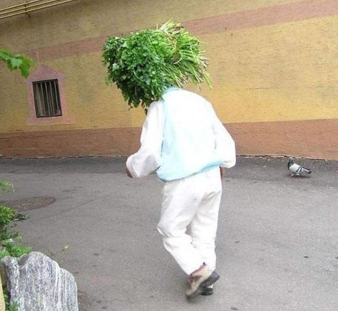 배추도사 실제 사진에 누리꾼들은 "어 이거 진짜 배추도사네", "실제 있을 줄이야ㅋㅋ", "머리에 이고 어디가는 거지?"등의 재밌다는 반응이다. (사진-온라인 커뮤니티)