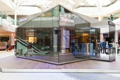 전면이 거울형 유리로 이루어져 소비자의 상상력을 자극하는 독특한 디자인의 삼성 모바일 PIN은 런던 하이드파크와 올림픽파크에도 추가 설치될 계획이다.